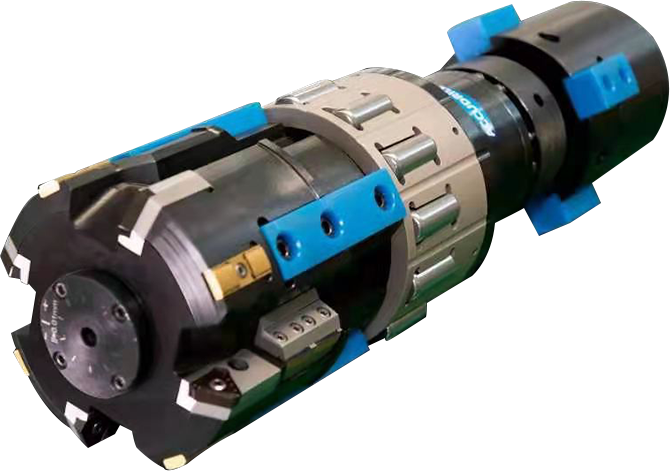 ?采用4+4刀片切削,通過(guò)4塊硬質(zhì)合金導(dǎo)向鍵支撐確保鏜刀頭無(wú)游隙移動(dòng)
